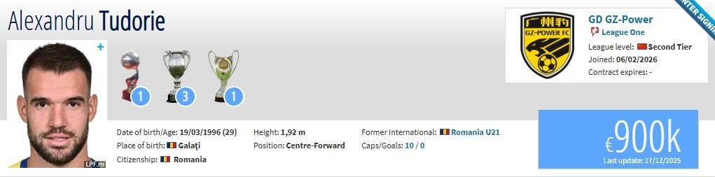 图多列现年29岁,来自罗马尼亚,司职前锋。此前球员共为武汉三镇出场26次,打进10球。现在他在德转上的身价为90万欧元。