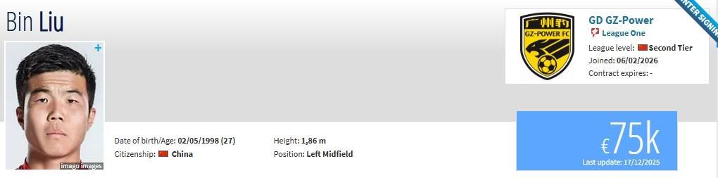 德转更新,原武汉三镇外援图多列、原河南队后卫刘斌加盟广东广州豹。